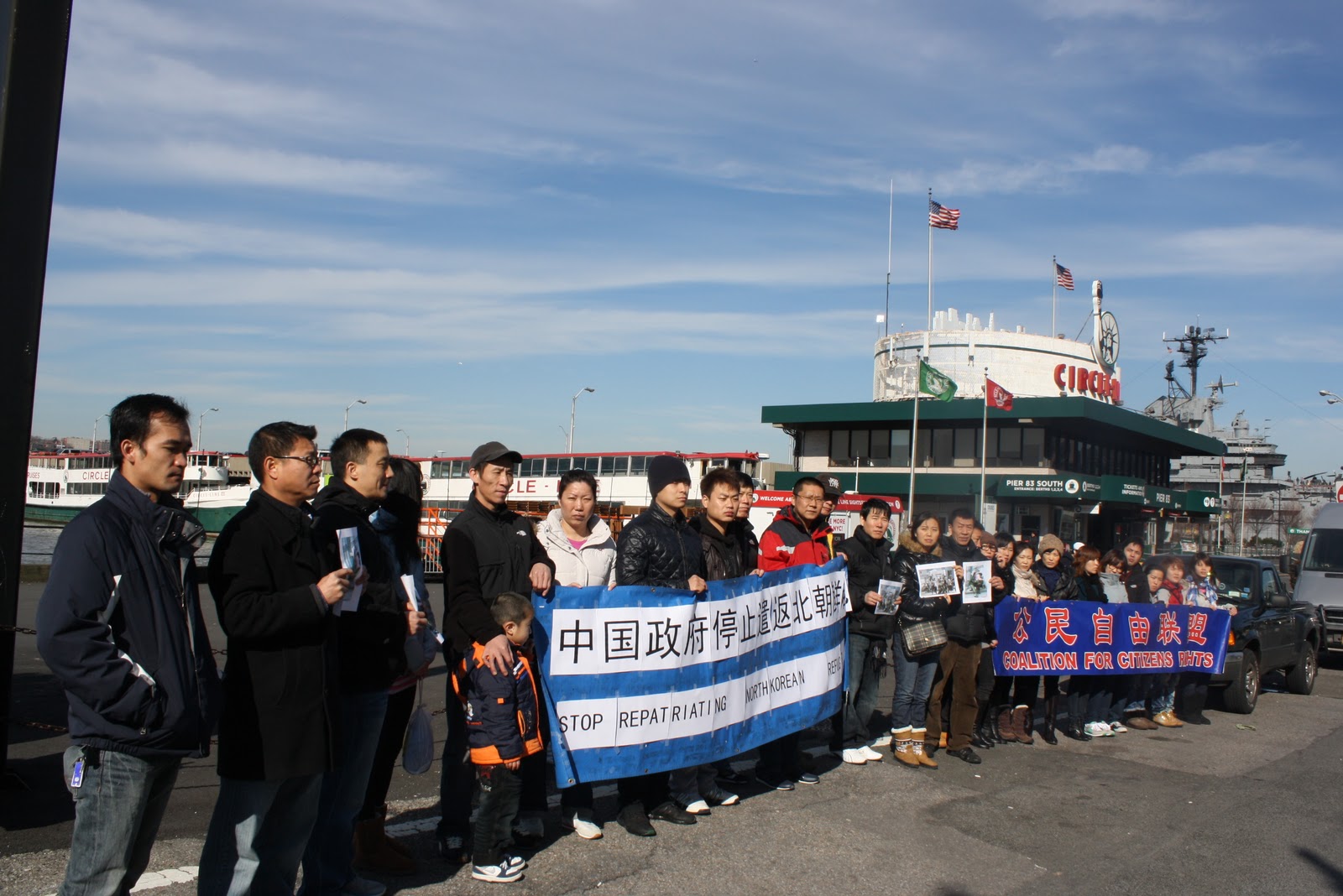On January 31, 2012, "Coalition for Citizens Rights" held a rally at the Chinese Consulate General New York demanding an end to repatriation of North Korean refugees. 2012年1月31日,公民自由联盟在中国驻纽约总领事馆外集会,要求中国政府停止遣返北朝鲜难民。